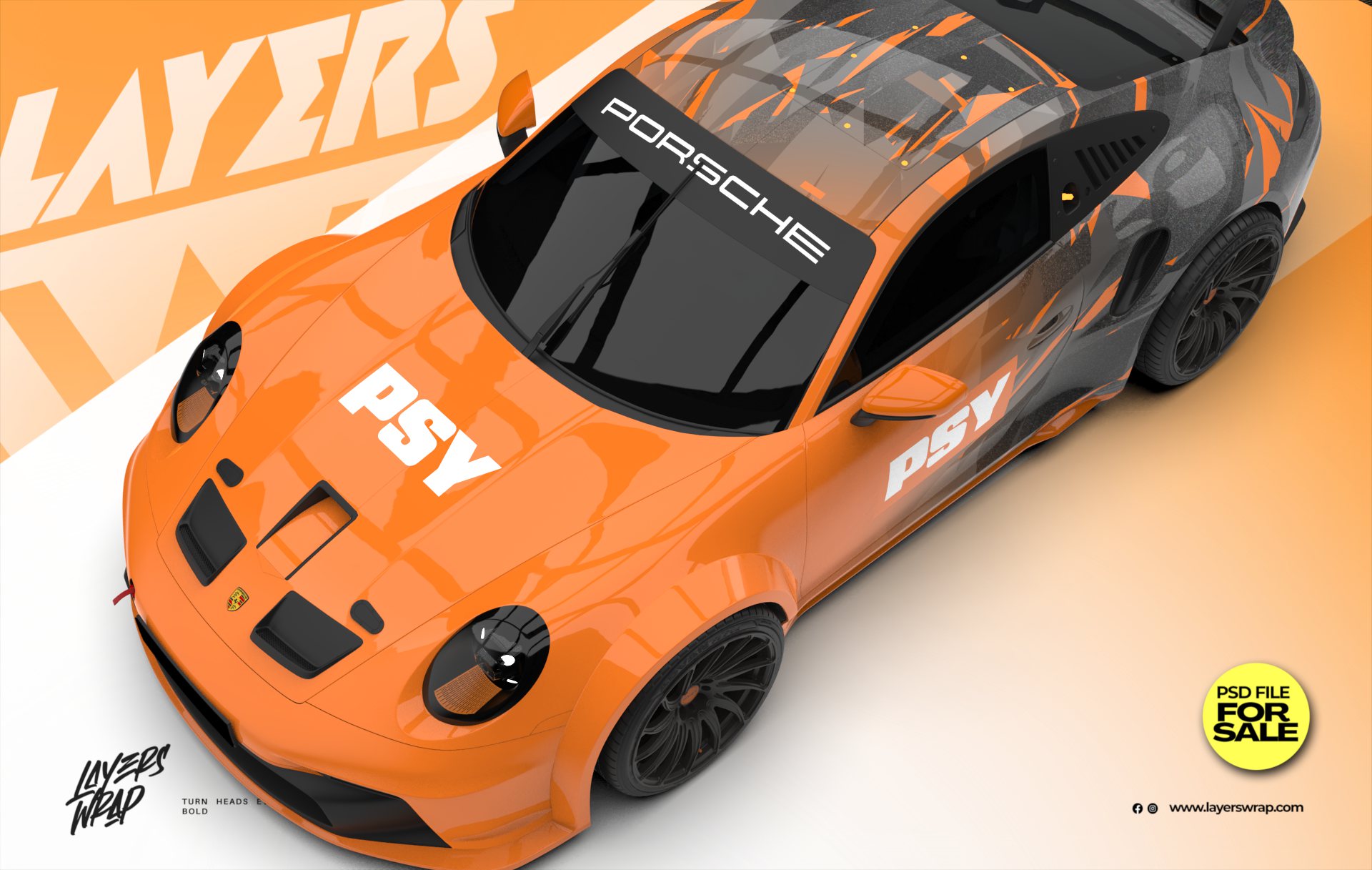 A premium digital wrap design supplied as an editable PSD file, created for builders, wrap shops, and enthusiasts who want a bold camo-driven visual with sharp contrast and motion.