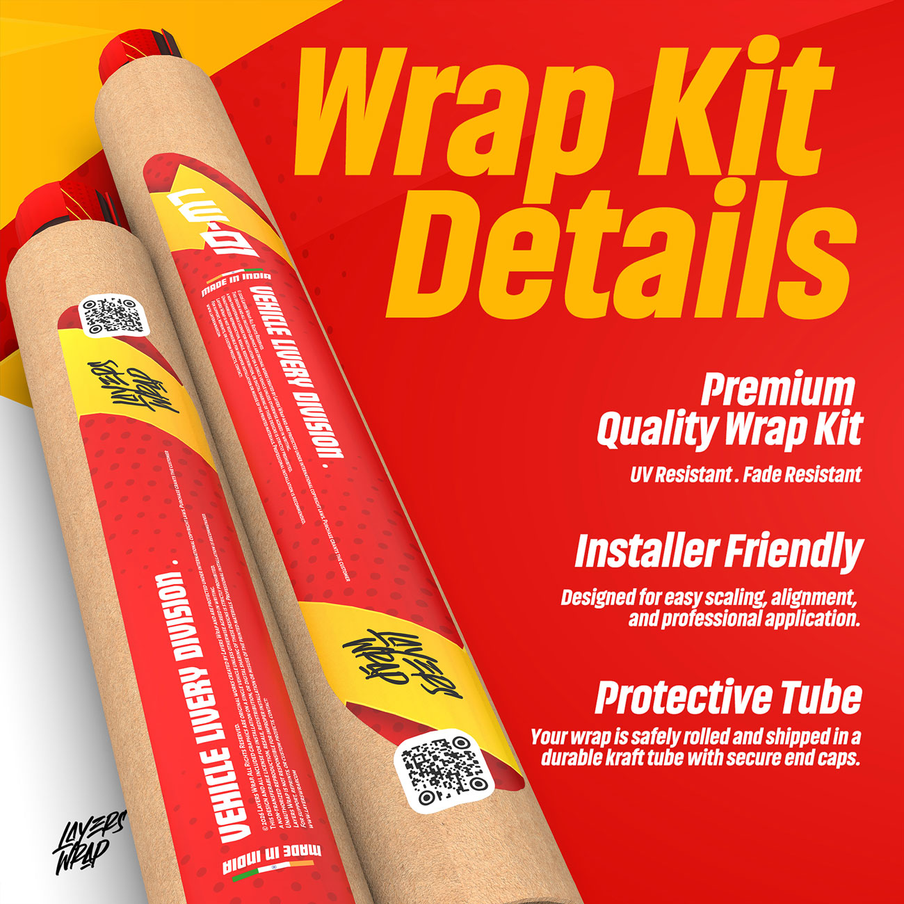 Transform your vehicle into a moving piece of art with Layers Wrap’s premium design kits. Each wrap is meticulously crafted to complement your car’s unique shape and style — transforming everyday rides into bold statements. Our wraps are printed on high-quality vinyl with UV protection for long-lasting color and durability.
